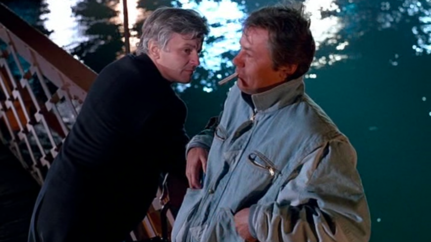 Dans l'agglomération lyonnaise à Caluire ou sur les quais du Rhône en centre-ville, Alain Delon éclabousse de sa classe et crée systématiquement des attroupements. Il a alors la cinquantaine et réalise une course-poursuite mythique sur les berges, qui n'étaient encore qu'un vaste parking à ciel ouvert, avec au bout, une cascade dans l'eau du fleuve.