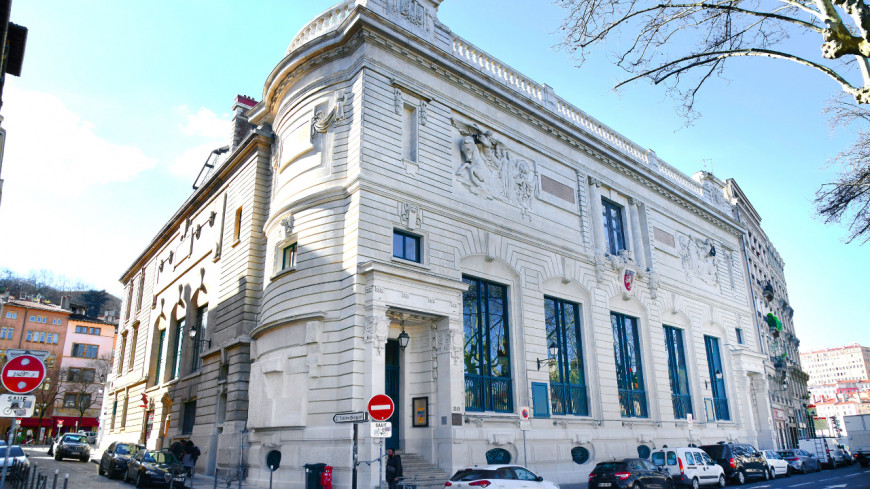Croisée d'archi avait été chargé de restaurer la façade principale qui donne sur le quai de Saône. "Percée de cinq grandes baies vitrées, cette importante façade est surmontée par une corniche avec balustrade et deux bas-reliefs réalisés par le sculpteur Thomas Lamothe symbolisant la Musique, la Peinture et la Sculpture, avec au centre une cartouche aux armoiries de la Ville de Lyon", rappelle la mairie.