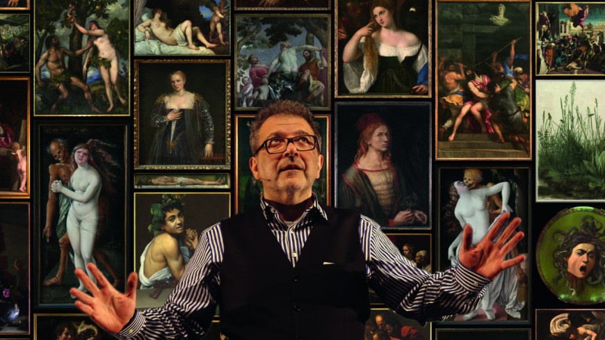 Dans ce show à mi-chemin entre le stand-up et la conférence, l'historien de l’art est accompagné de musiciens et d’un écran géant où sont projetés les tableaux qu’il souhaite analyser, et il y en a un certain nombre.
