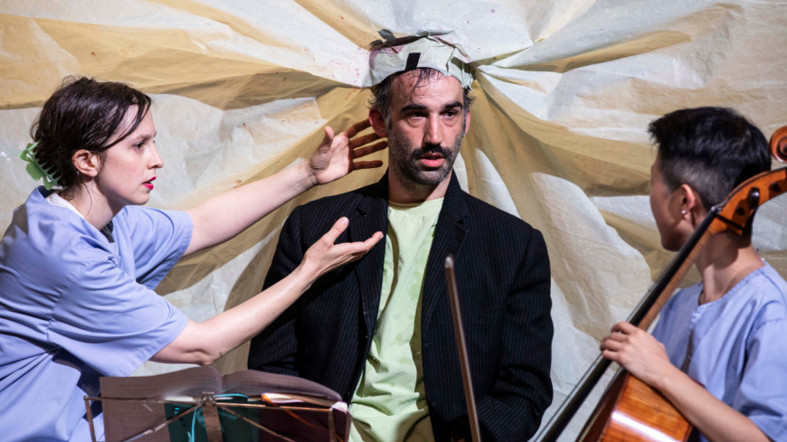 Entre disputes, gags absurdes et envolées musicales, un petit orchestre émerge des décombres pour accompagner cette symphonie de la séparation. La mythologie du couple et l’idée d’un amour absolu, de Tristan et Yseult jusqu’à nos jours, sont ici questionnées.